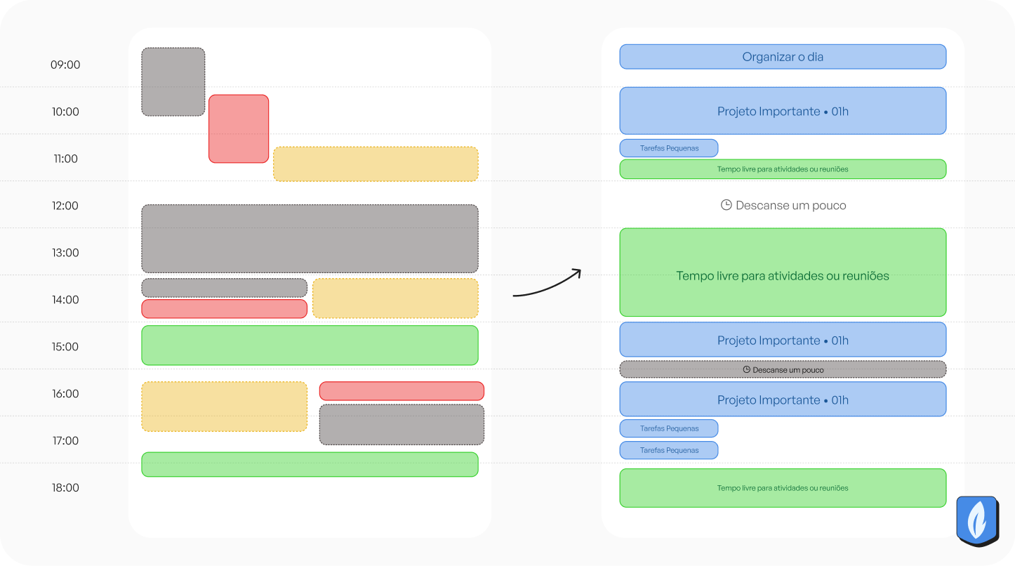 Crie 1 agenda diária de tarefas longas no seu período mais produtivo;